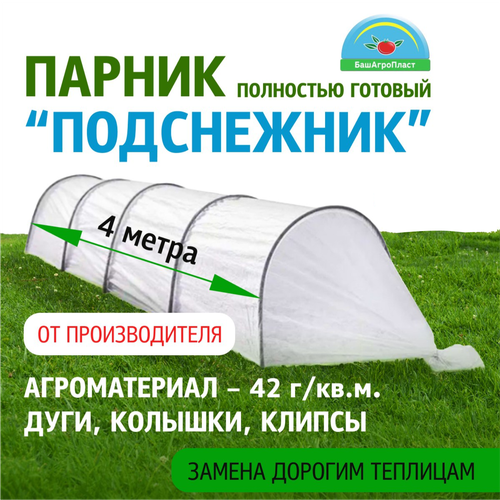 Парник для дачи "Подснежник" 4 метра, плотность 42гр/м2, дуги ПНД, клипсы и колышки от компании БашАгроПласт
