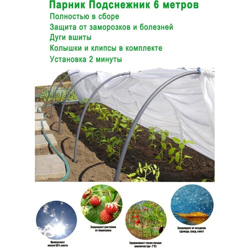 Парник для дачи "Подснежник" 6 метров, плотность 42 гр/м2, парниковые дуги ПНД, клипсы и колышки от компании БашАгроПласт