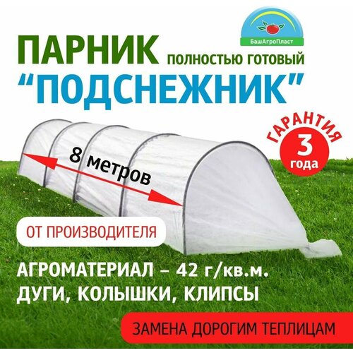 Парник для дачи "Подснежник" 8 метров, плотность 42 гр/м2, парниковые дуги ПНД, клипсы и колышки в комплекте от компании БашАгроПласт