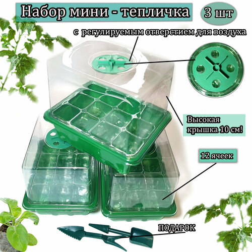 Набор мини-тепличка для рассады 3 шт. Высокая крышка. Вентиляционное отверстием.
