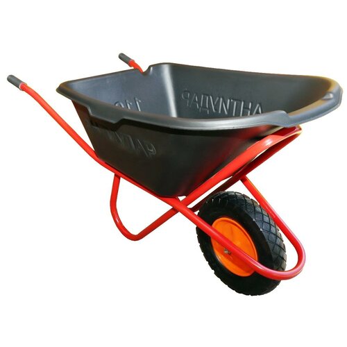 черный, красныйИмеет антиударное корыто увеличенного объема из специального рецептурного полимера, формованного при низком давлении объемом 180 литров (не гнется, сохраняет форму при ударах). Эргономичная форма корыта позволяет перевозить строительный и садовый инструмент без смещения во время движения, легко сливать жидкость - у корыта есть подлопатник, растворослив и боковые ручки. Тачку можно взять с боку руками.