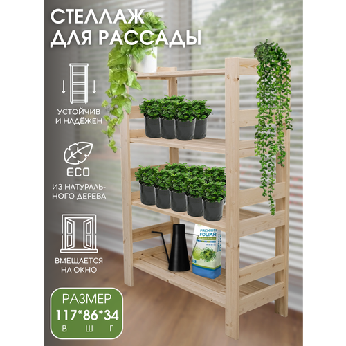 Стеллаж для рассады Bergwolf, деревянный, повышенная прочность, 117x86x34 см, 4 полки, до 200 кг, отшлифован
