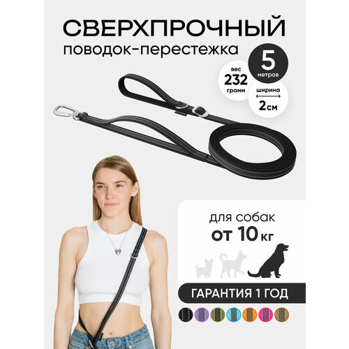 Поводок-перестежка для собак крупных пород 5 метров, PRO COMFORT