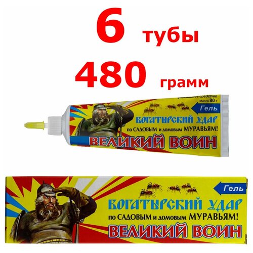 6шт по 80г(480г) Великий Воин гель от садовых и домовых муравьев (желтый) (туба), 480 грамм