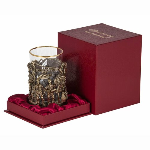 Подстаканник Строители (стакан - хрусталь с золотым ободком, картонный футляр)