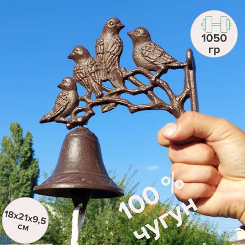 Колокол чугунный птички для дома, сада, дачи. Большой размер