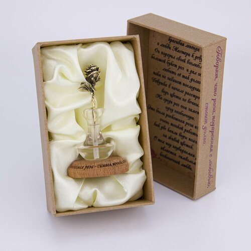 Цветок "Неувядаемая роза" (роза литье из бронзы, стеклянная ваза на деревянной подставке, книга афоризмов "О, эти женщины")