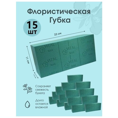 Губка флористическая (основа, пена), 23 х 11 х 7,5 см, 15 штук