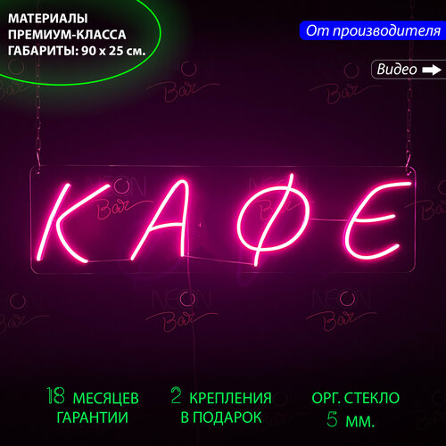 Неоновая вывеска, неоновые вывески на стену, неоновый светильник, настенная неоновая лампа, неоновая надпись "Кафе", для кафе, 90 х 25 см.
