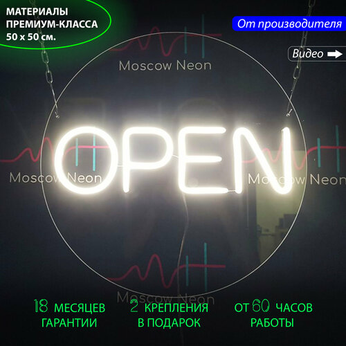 Неоновая вывеска для бизнеса с надписью "Open", 50 х 50 см. / светильник из гибкого неона