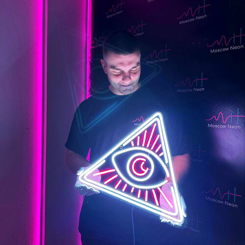 Неоновый светильник / Неоновая светодиодная вывеска на стену / Настенная неоновая лампа "Масонский символ" для масонских мероприятий, 40 х 44 см.