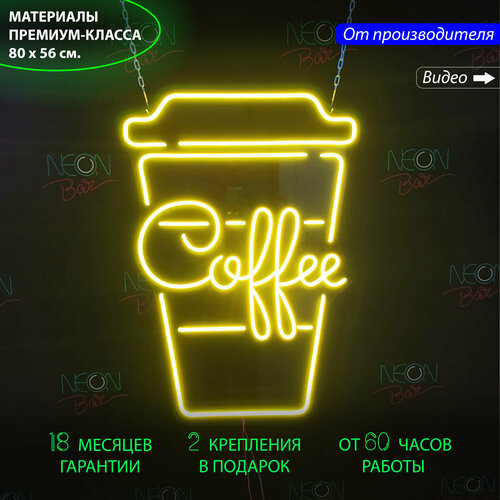 Неоновая вывеска для кафе и кофейни с надписью "Coffee", 80 х 56 см. / светильник из гибкого неона