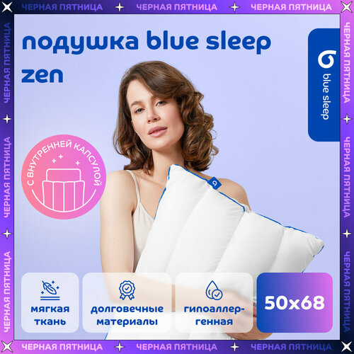 Подушка для сна 50х70 Blue Sleep Zen для шеи с капсулой из лебяжьего пуха