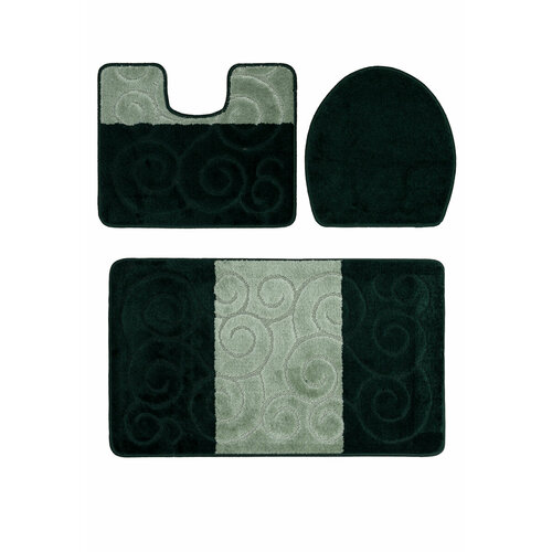 Комплект ковриков 60*100; 50*60; 47*50 см для ванной, для туалета, для унитаза, зелёный Confetti Bath Maximus Sile 2536 Hunter Green BQF
