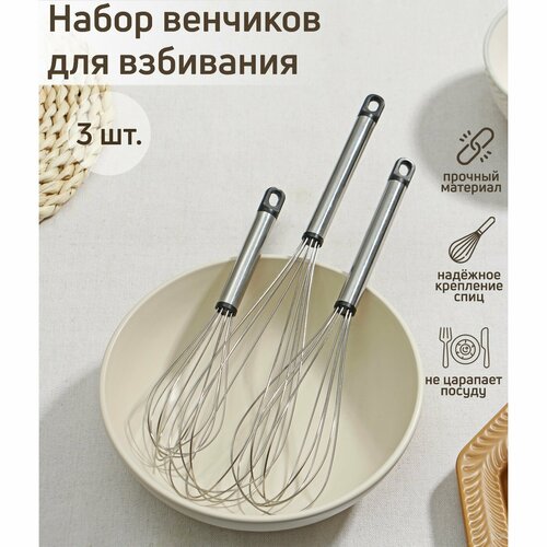 Набор венчиков для взбивания Доляна «Помощник», 3 шт: 19 см, 24 см, 29 см