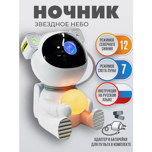 Ночник-проектор звездное небо Космонавт с луной/ детский ночник звездное небо астронавт с шаром в подарок на 23 февраля и 8 марта LEMIL
