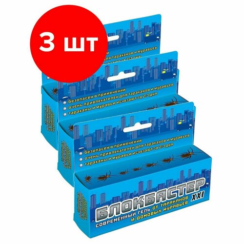 Гель от тараканов и бытовых муравьев Ваше хозяйство Блокбастер XXI, 3 шт по 45 г (135 г)