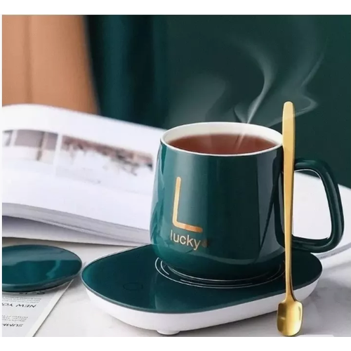 Кружка с подогревом от usb, крышкой и ложкой для кофе, чая, 350 мл, чашка для чая и кофе, термокружка зеленая/ в подарочной упаковке LEMIL