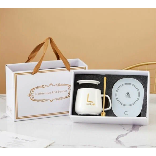 Кружка с подогревом от usb, крышкой и ложкой для кофе, чая, 350 мл, чашка для чая и кофе, термокружка белая/ в подарочной упаковке LEMIL