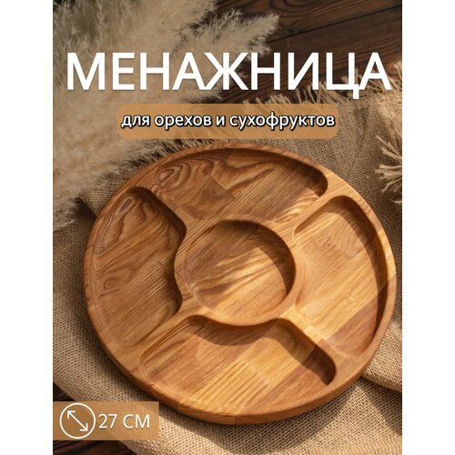 Менажница тарелка 5 секций деревянная для орехов и сухофруктов , разделочная доска. Диаметр 25.5см