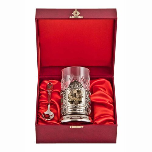 Набор для чая "попутного ветра" (3 предмета). Подстаканник, хрустальный стакан.