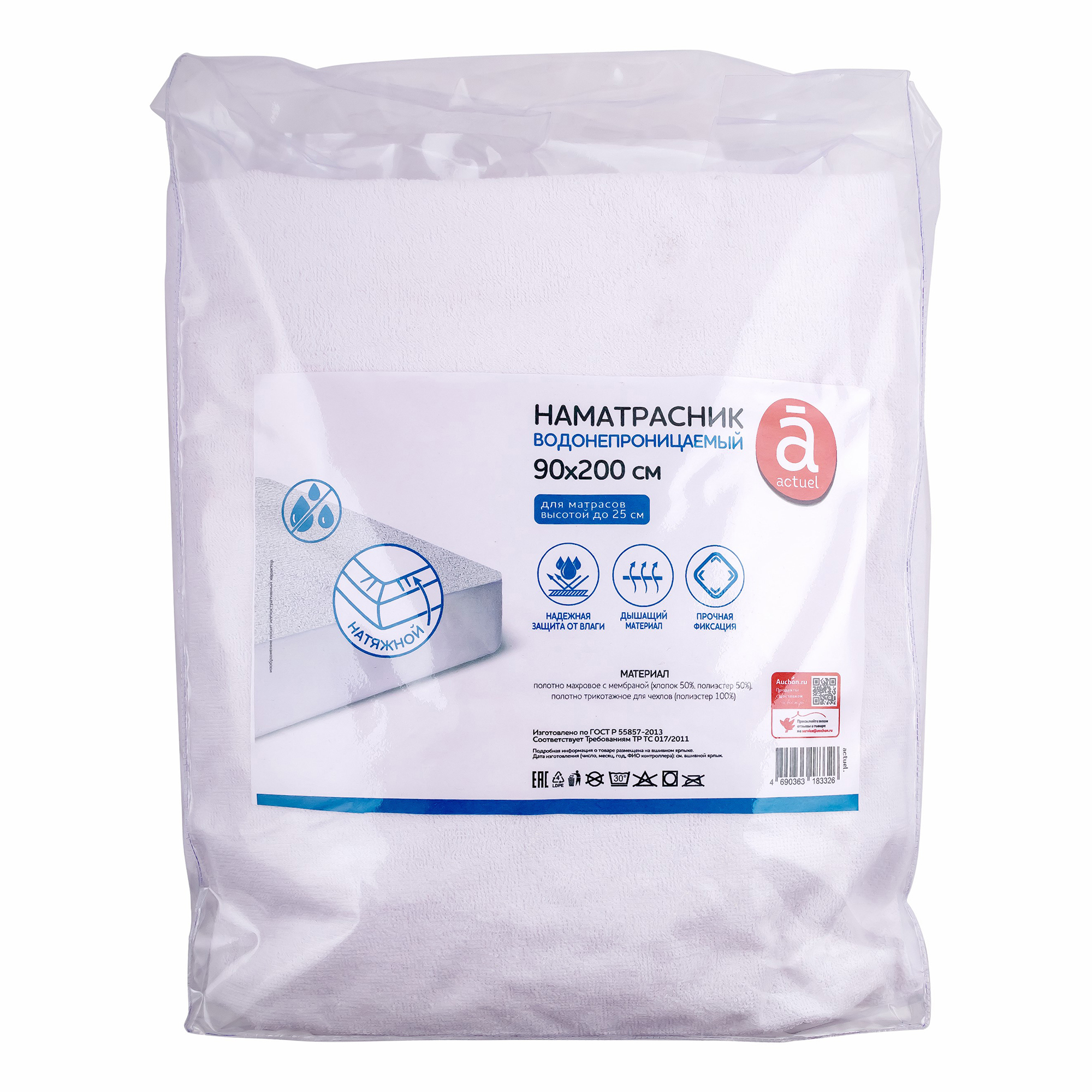 Наматрасник Actuel 90x200 см водонепроницаемый белый 100054198436