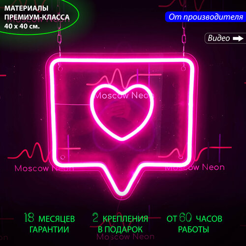 Неоновый светильник / Неоновая светодиодная вывеска на стену / Настенная неоновая лампа "Сообщение с сердечком" для романтических мест, 40 х 40 см.
