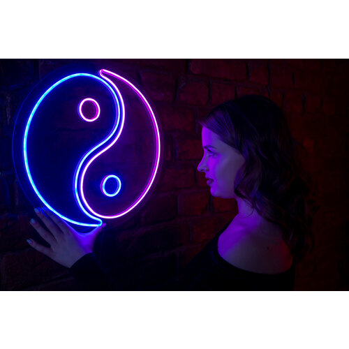 Неоновая вывеска PJ Neon Инь Янь, 40х40 см, розовый, синий