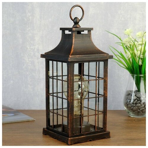 Ночник "Фонарь лофт " LED с медной патиной 13х13х31 см