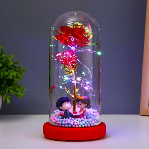 Сувенир на новый год искусственная роза в колбе из Красавицы и чудовища с подсветкой, темная подставка