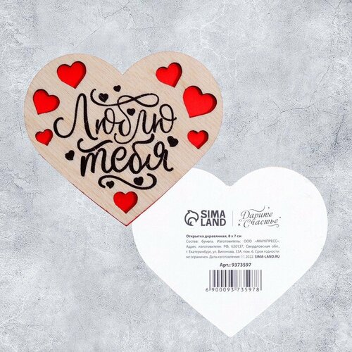 Открытка-валентинка деревянная «Люблю тебя», 8 × 7 см