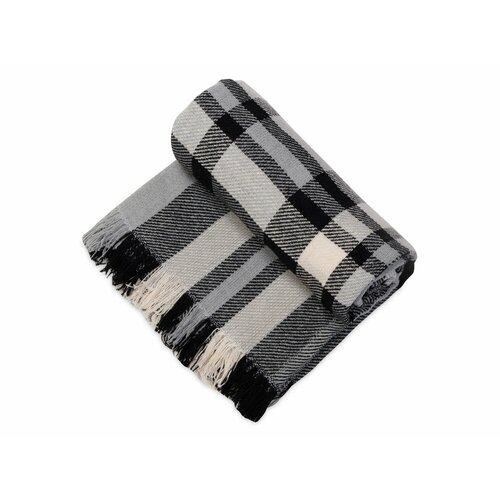 Плед «Liner» хлопковый с бахромой (большой размер), цвет серый, черный