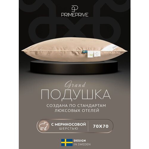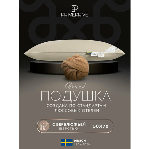 Подушка для сна 50x70 PRIME PRIVE "Camel Softy" в стеганом чехле на молнии из микрофибры с верблюжьей шерстью, 1 шт бежевый