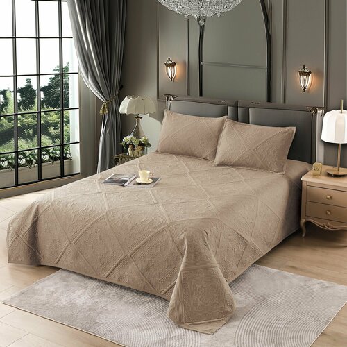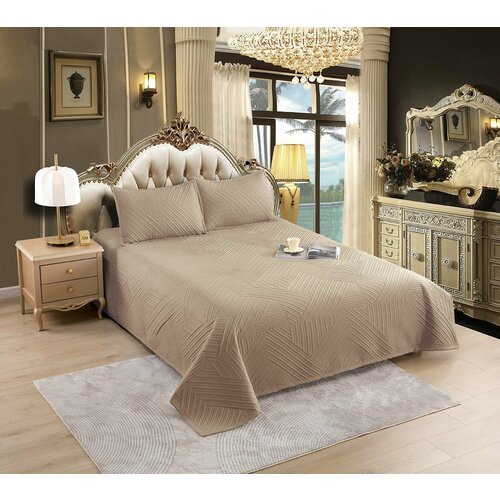 Покрывало стеганое Karina Home Collection, Велюр искусственный Евро размер: 220*240 см светло-коричневый