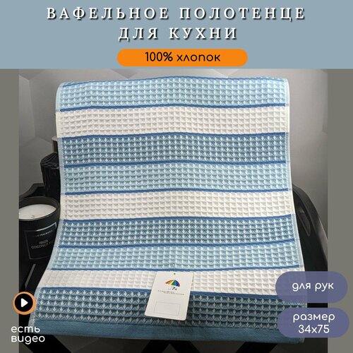Полотенце 1 шт. для рук и для кухни, размер 34х75 см, вафельная ткань, хлопок 100% , 5104197-голубой