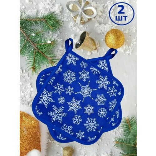 Прихватки кухонные Снежинки синие