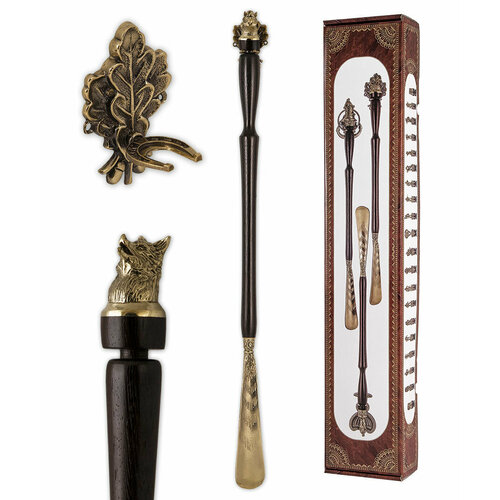 Рожок для обуви большой "Лиса" с крючком "Дубовый лист" НРОБ-15