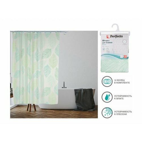 Шторка для ванной (12 колец в комплекте), 180x180 см, Secret, листья, PERFECTO LINEA (Материал: пэва) (36-118003)