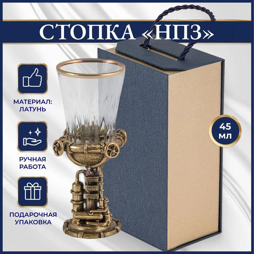 Стопка (чарка) "Державная" из латуни с позолочением, с трехколорными эмалями в футляре из дизайнерского картона с ложементом. Разме...