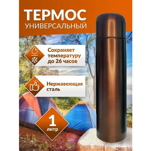 Термос для чая туристический 1 литр металлический с кнопкой