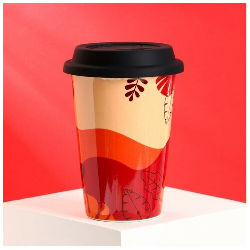 Дорого внимание Стакан с силиконовой крышкой «Листья», 300 мл