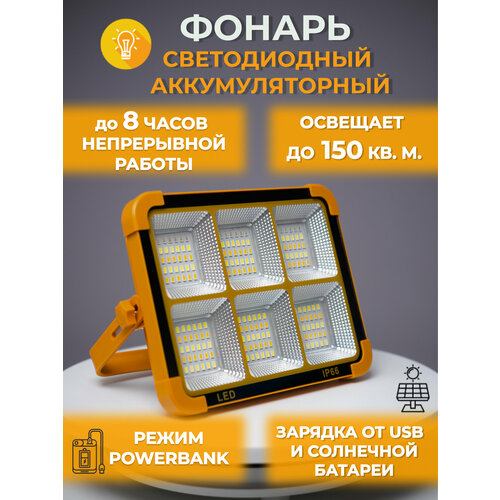 Прожектор светодиодный уличный аккумуляторный Solar Lamp на солнечной батарее, powerbank 10000mAh, светильник кемпинговый