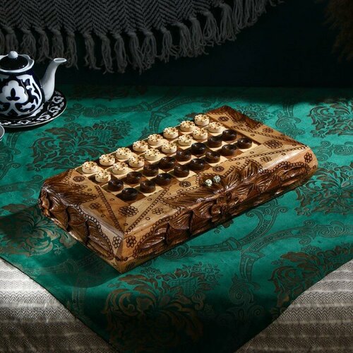 Настольная игра 3 в 1 «Ромб, Резка, Выжигание»: 50х25 см, ручная работа, массив ореха, Иран