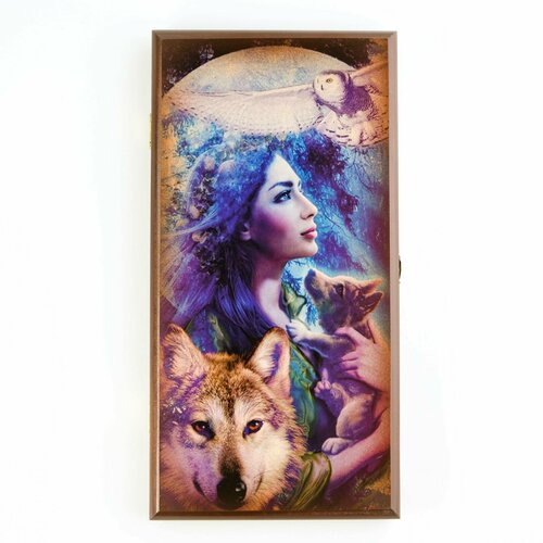 Нарды "Девушка с волками", деревянная доска 40 x 40 см, с полем для игры в шашки
