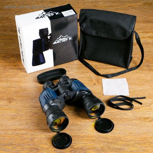 Бинокль 7х50, "Пересмешник". черный, линзы рубин, с синей вставкой