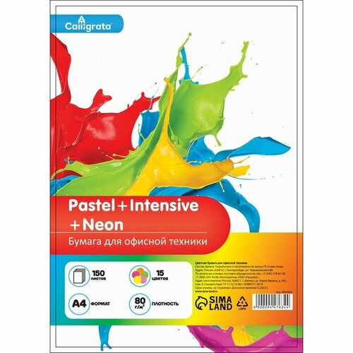 Бумага цветная А4 150л Calligrata Пастель + интенсив + неон микс 15цв 80г/м2