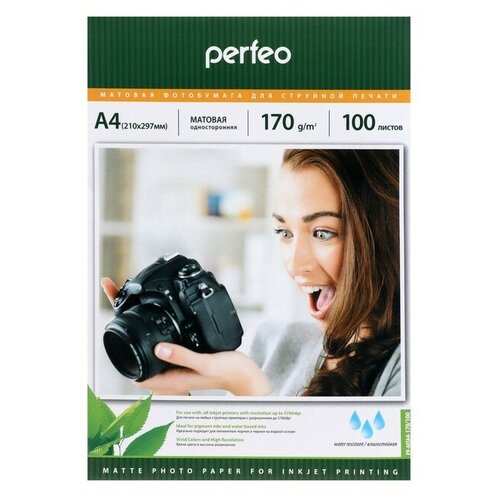 Perfeo Фотобумага для струйной печати А4, 100 листов Perfeo, 170 г/м2, односторонняя, матовая