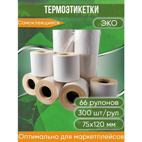 Термоэтикетки самоклеящиеся ЭКО, 75х120, 300 наклеек в рулоне, втулка 40 мм, упаковка 66 шт.