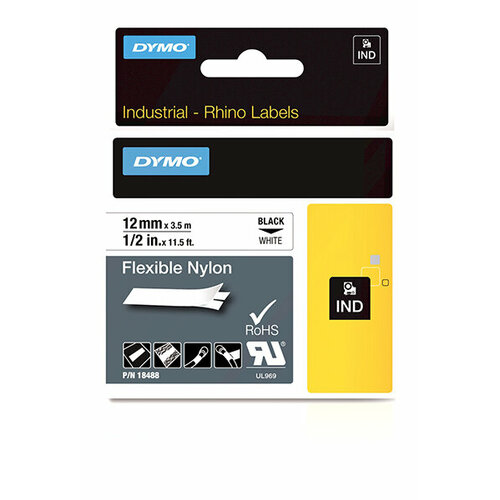 Нейлоновая лента Dymo Rhino [18488/S0718100] (черный на белом, 12 мм, длина 3.5 м)