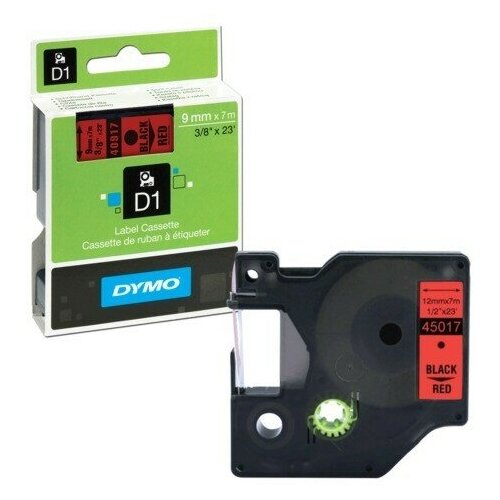 Картридж для принтера Dymo D1 12 мм х 7 м, пластик, черный на красной ленте / Ленточный картридж S0720570/45017 / Лента для Dymo D1 S0720570/45017